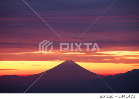 夜明けの富士山とグラデーションの空