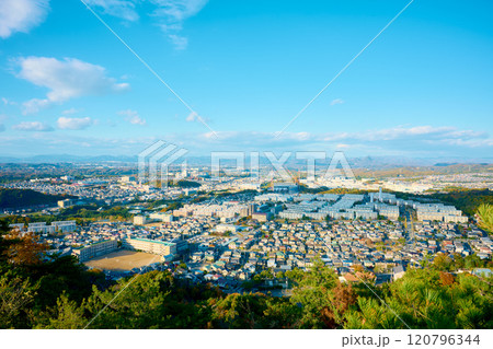愛媛県四国中央市 具定展望台から三島川之江IC付近・高丸山方面を望む