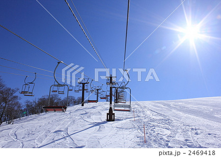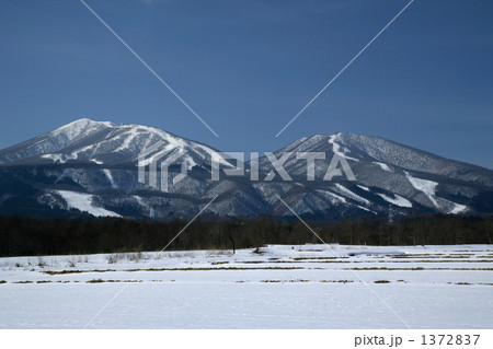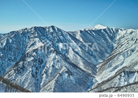 冬の谷川岳ロープウェイ天神平駅付近から天神平スキー場、高倉山を見る