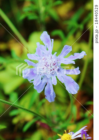 秋の野の花・訪れる清しい秋の色の松虫草の花1輪・花俯瞰縦位置