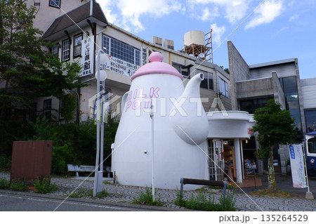 復活したミルクポットと清里駅前の街並み
