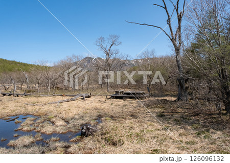 栃木県那須高原沼ッ原湿原の歩道の風景