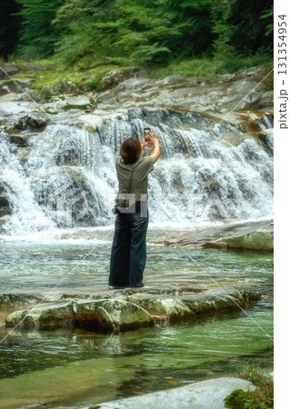 日本 長野県松本市安曇の乗鞍高原 滝見大から見える善五郎の滝