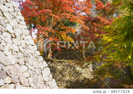 高取城跡の大手門跡と紅葉/奈良県高市郡高取町