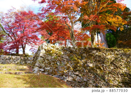 高取城跡の大手門跡と紅葉/奈良県高市郡高取町
