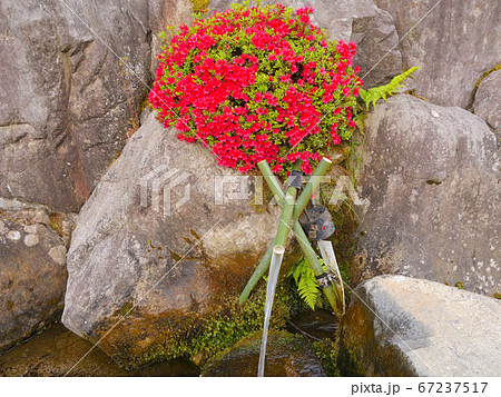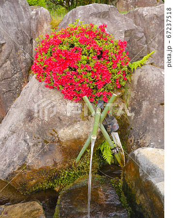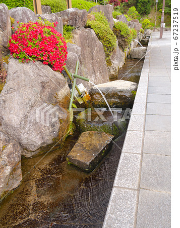 ツツジ咲く「新松か井の水(しんまつかいのみず)」/平成の名水百選」/播磨十水の名水/新緑とツツジ