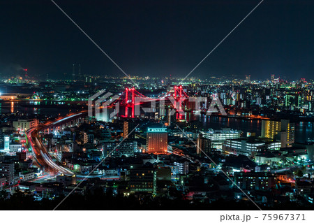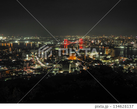 高塔山からの眺望 美しい若戸大橋(福岡県北九州市)