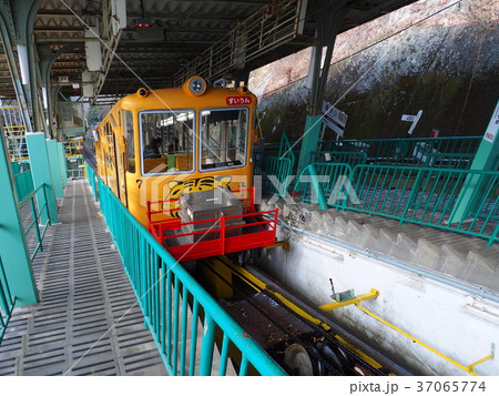 大阪府八尾市 西信貴ケーブル高安山駅に停車するケーブルカー
