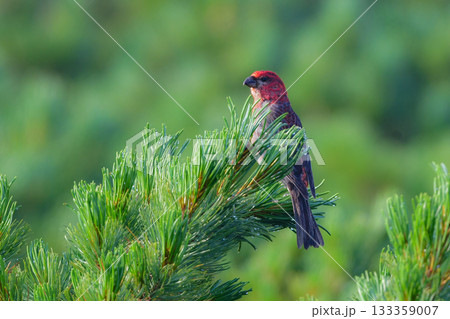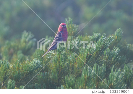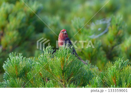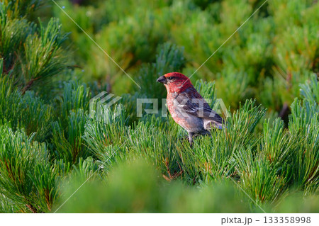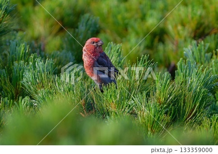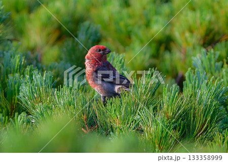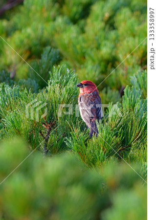 初夏から夏に知床や大拙山等北海道の山で出会える真っ赤な美しい野鳥、ギンザンマシコ
