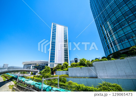 日本の横浜都市景観 みなとみらいのKアリーナなどを望む=23日