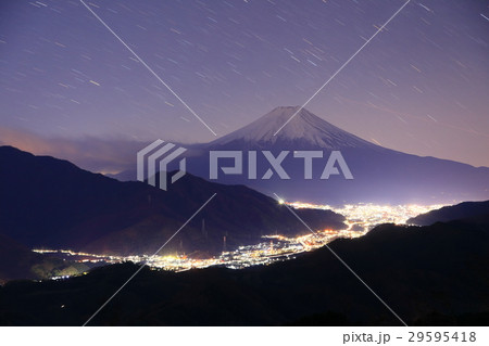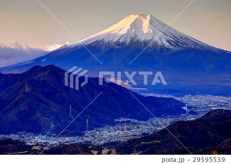 (山梨県)高川山から見る冬の富士山と街並みの絶景