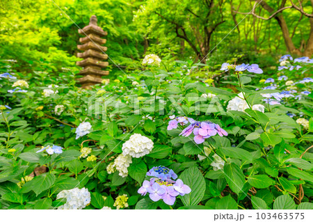 東京 日野市 高幡不動尊 供養塔と山あじさい