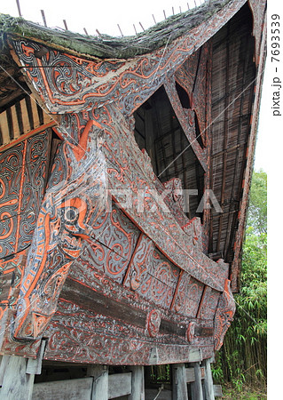 インドネシアのタナトラジャにある伝統的家屋、トンコナンのある風景