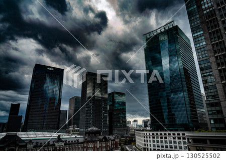 春の神奈川県横浜市の汽車道から新港、海岸通地区を見る