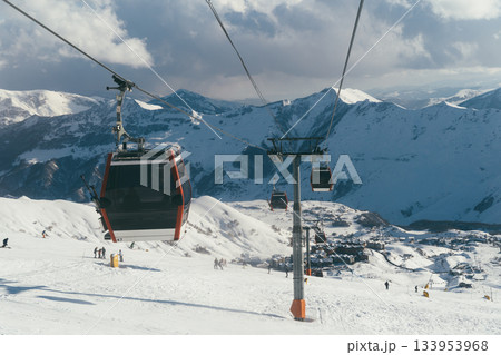 Ski lift in Gudauri, Georgia, transporting skiers through snowy mountains
