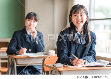学校の教室・塾で試験・テストを受ける高校生・中学生・小学生の女の子(受験)