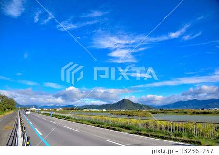 滋賀県長浜市高時川の堤の満開の桜を撮影