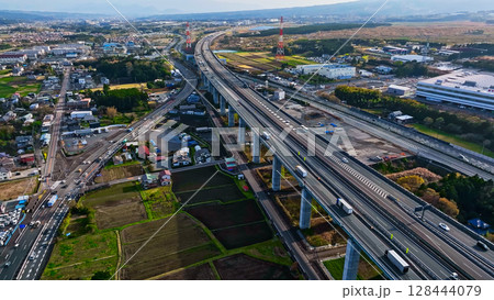 高速道路の風景真俯瞰空撮