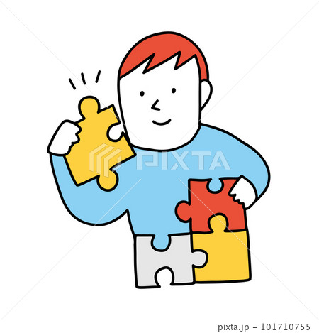 パズルを持つ男の子、ビジネスマン