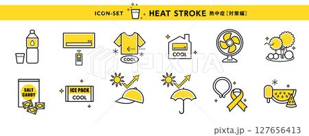 熱中症予防アイコンセット/夏の健康対策イラスト素材(Heatstroke Prevention