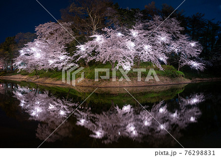 高田城址公園 水に映る夜桜