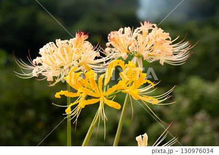 黄色とクリーム色のリコリスの共演