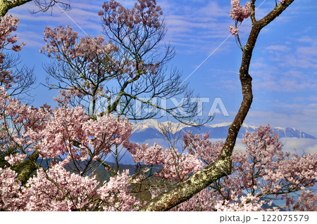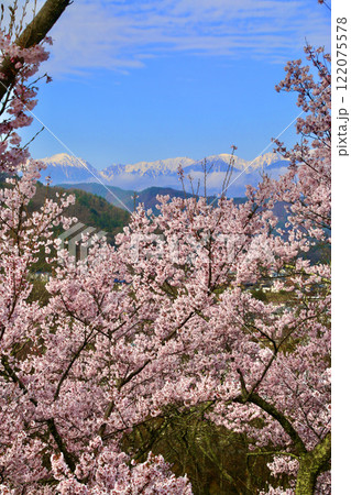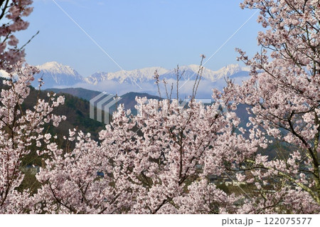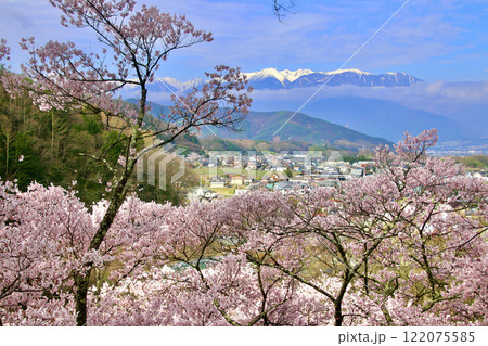 高遠城址公園の桜・中央アルプス(長野県・伊那市)