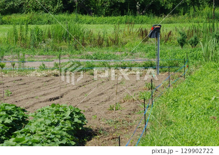 熊など獣を防ぐソーラー式電気柵設置した様子