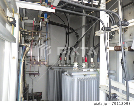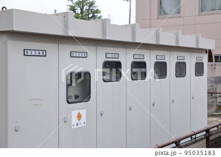 金属で覆われた箱型の高圧受電設備(キュービクル)