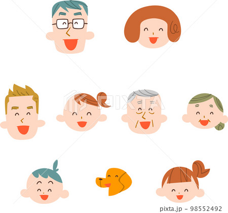 笑顔の表情6人家族/ポジティブなイメージ/顔だけのアイコン