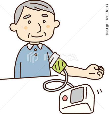 血圧計で血圧を測定している高齢者(男性)のイラスト