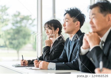 スーツ姿の高齢者・シニアと若者(セミナー・講習会・家族セミナー)