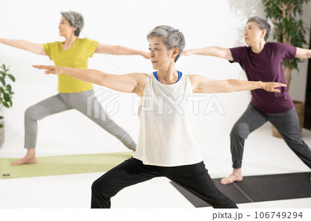 シニアヨガ・ヨガをする60代の女性