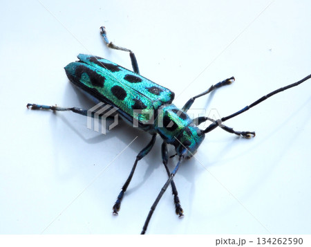 生き物 昆虫 ミドリカミキリ、ピカピカの体は鳥除け?光の具合で色が微妙に変化します
