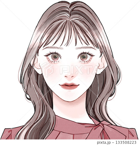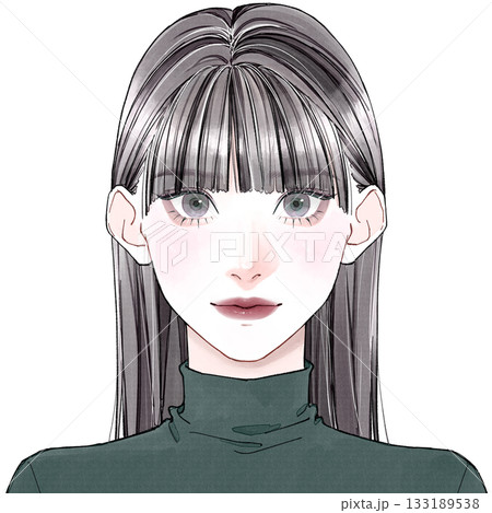 大人女子のロングヘアの韓国風線画イラスト