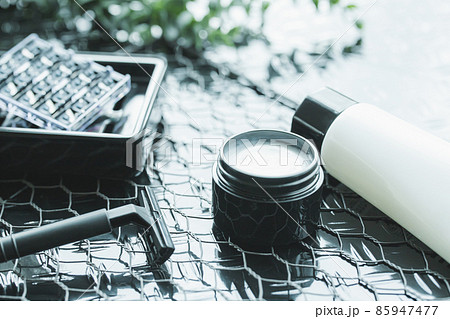髭剃りとメンズコスメ 男性用化粧品のイメージ素材