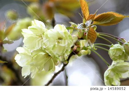 うこん桜 鬱金桜 薄緑色の花をつけるうこんの桜