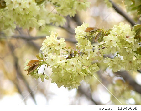 薄緑色の桜 うこんの桜 鬱金 鬱金桜 桜 満開の鬱金