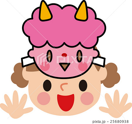 節分 お面をかぶった女の子