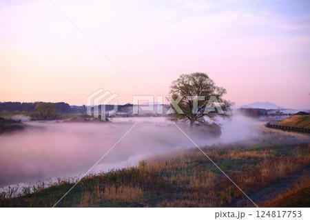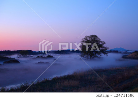宇都宮市 川霧に包まれた鬼怒川と筑波山