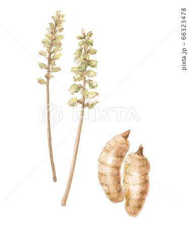 水彩で描いたビャクゴウ(百合) ユリの鱗片葉