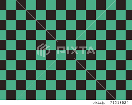 緑と黒の「市松模様」和柄パターン、和紙風背景素材