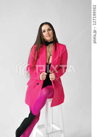 Fashionable Woman Posing In Pink Suit