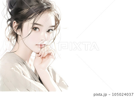 アップヘアスタイルのお姉さん 水彩画(Generative AI)
