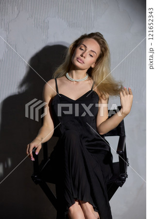 An Elegant Woman in a Beautiful Black Dress Posing Elegantly with Grace and Charm