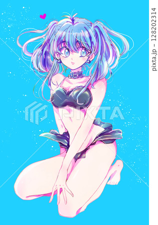 水着の女性 ツインテール 青髪