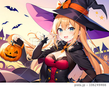 ハロウィン用/紫色のクラシックな魔女衣装を着た魔法使いの女の子【主線なし】