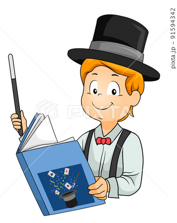 Kid Boy Magic Hat Tied Cloth Wand Illustration