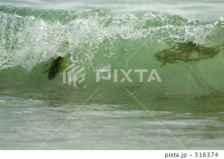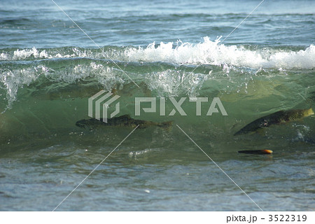 波に写る鮭の魚影