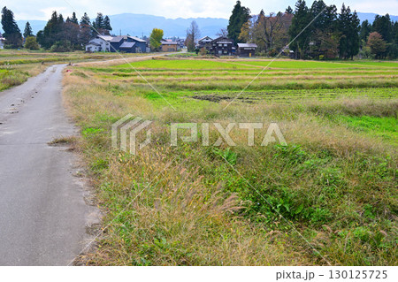 晩秋の魚沼の里風景 南魚沼市